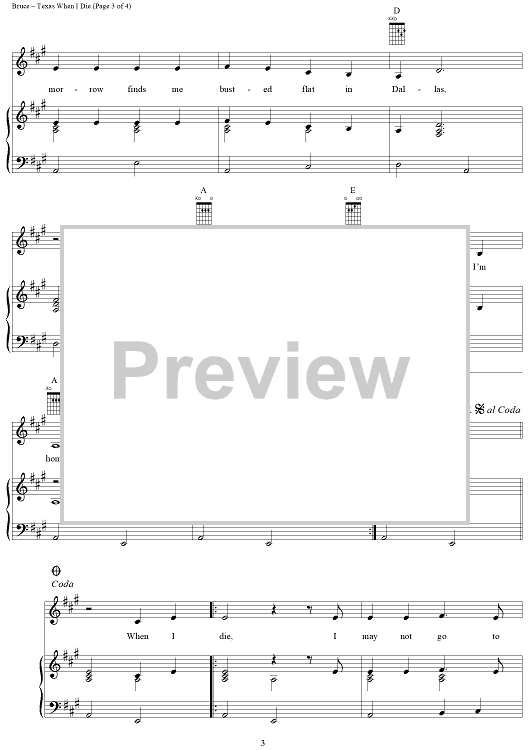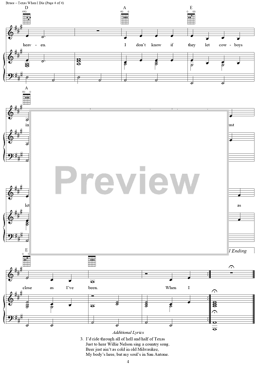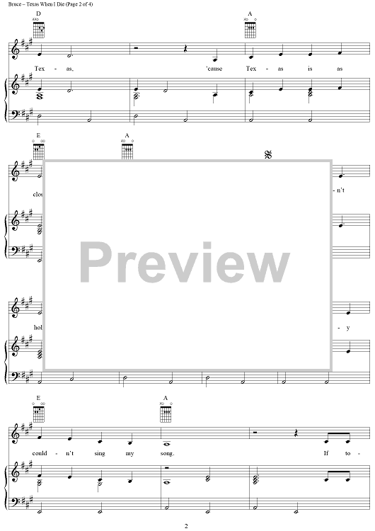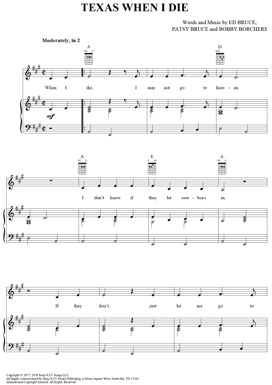 Digital Sheet Music for Texas When I Die by Tanya Tucker, Ed Bruce, Patsy Bruce, Bobby Borchers scored for Piano/Vocal/Chords; id:367722