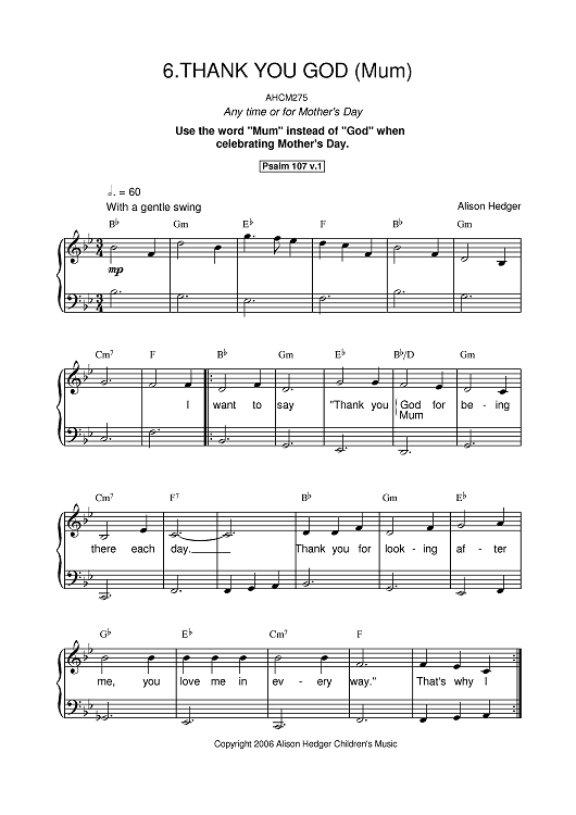 Digital Sheet Music for Thank You God by Alison Hedger scored for Piano/Vocal/Chords; id:391591