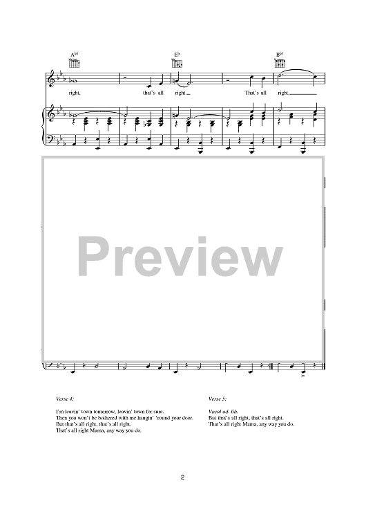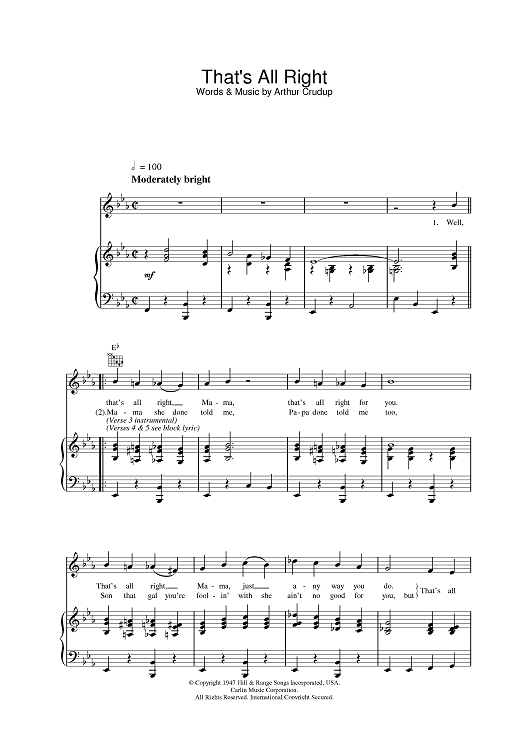 Digital Sheet Music for That's All Right by Elvis Presley scored for Piano/Vocal/Chords; id:376060
