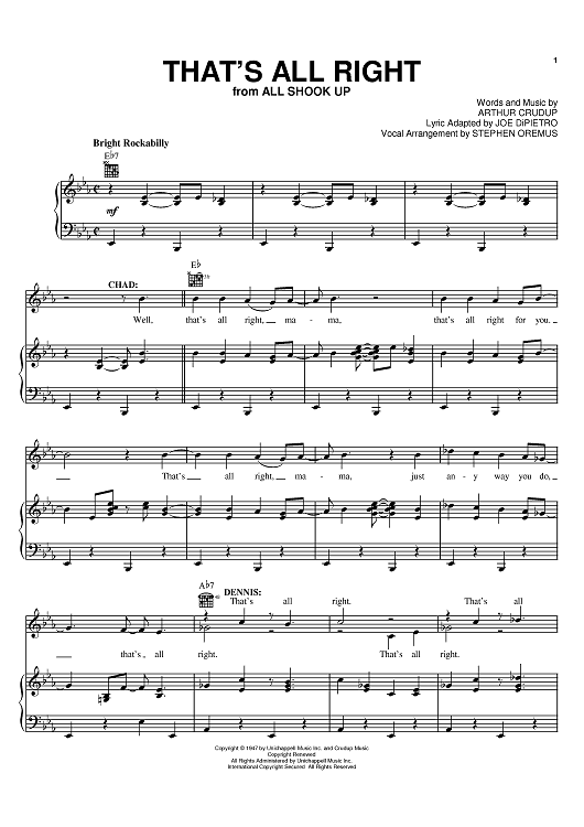 Digital Sheet Music for That's All Right by Johnny Cash, Elvis Presley, Arthur Crudup scored for Piano/Vocal/Chords; id:394148