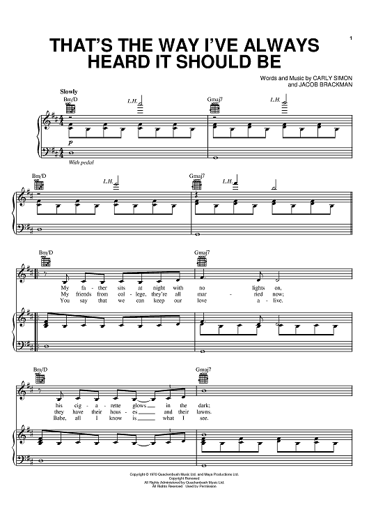 "That's The Way I've Always Heard It Should Be" Sheet Music by Carly Elisabeth Simon