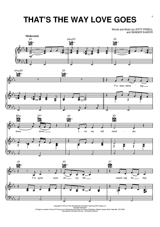 Digital Sheet Music for That's The Way Love Goes by Lefty Frizzell, Johnny Rodriguez, Sanger Shafer, Merle Haggard scored for Piano/Vocal/Chords; id:381729