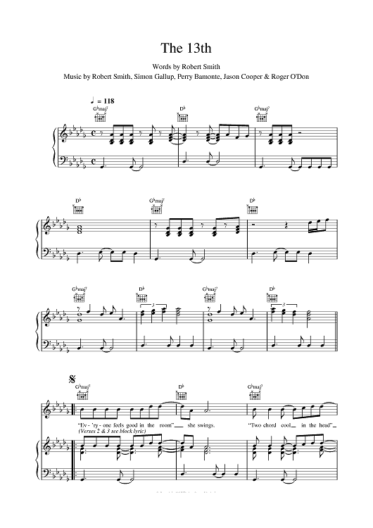 Digital Sheet Music for The 13th by The Cure scored for Piano/Vocal/Chords; id:376463