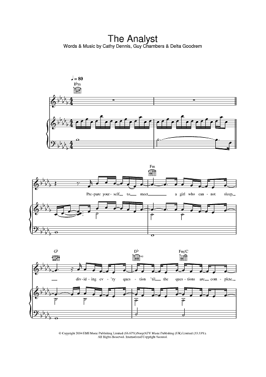 Digital Sheet Music for The Analyst by Cathy Dennis, Guy Chambers, Delta Goodrem scored for Piano/Vocal/Chords; id:381714