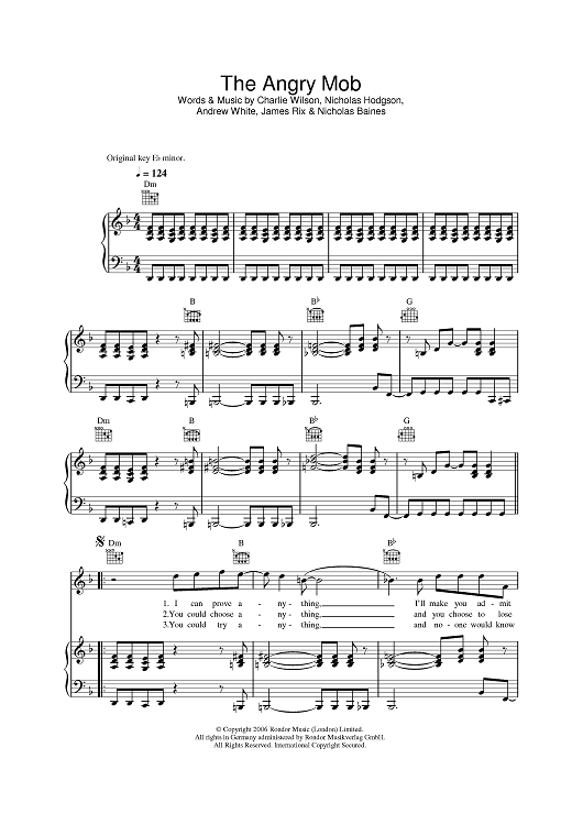 Digital Sheet Music for The Angry Mob by Nick Baines, Nick Hodgson, Kaiser Chiefs, Simon Rix, Andrew White, Charlie Wilson scored for Piano/Vocal/Chords; id:397041