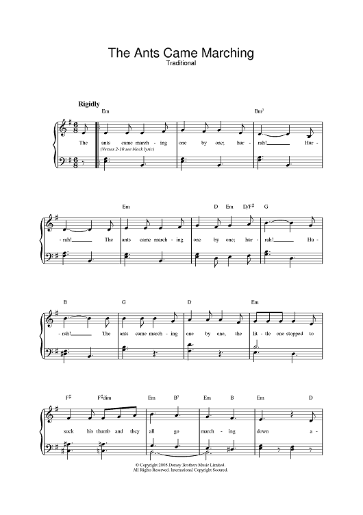 Digital Sheet Music for The Ants Came Marching by scored for Piano/Vocal/Chords; id:387549