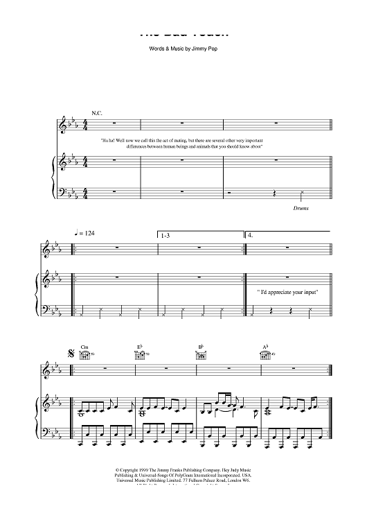 Digital Sheet Music for The Bad Touch by Bloodhound Gang, Jimmy Pop scored for Piano/Vocal/Chords; id:377061