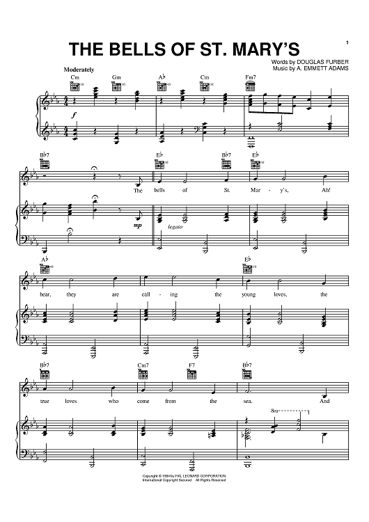 Digital Sheet Music for The Bells Of St. Mary's by Chet Atkins, Perry Como, Douglas Furber, A. Emmett Adams, Vera Lynn scored for Piano/Vocal/Chords; id:373237