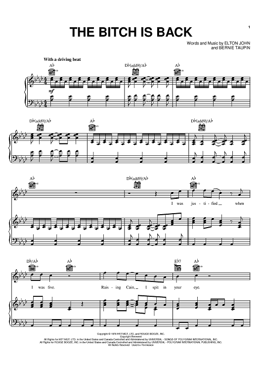 Digital Sheet Music for The Bitch Is Back by Elton John, Bernie Taupin scored for Piano/Vocal/Chords; id:392557