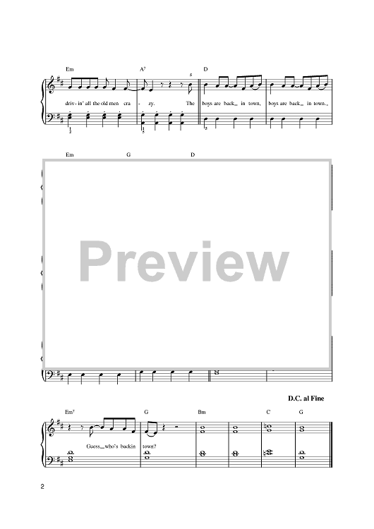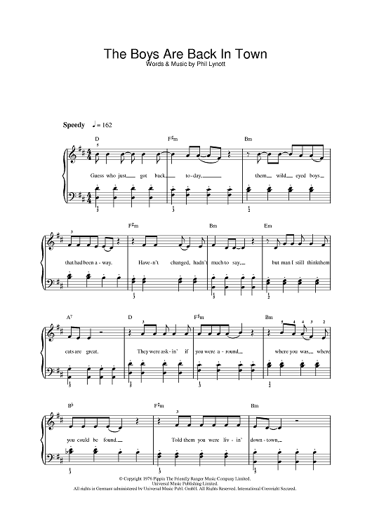 Digital Sheet Music for The Boys Are Back In Town by Thin Lizzy, Phil Lynott scored for Piano/Vocal/Chords; id:398691