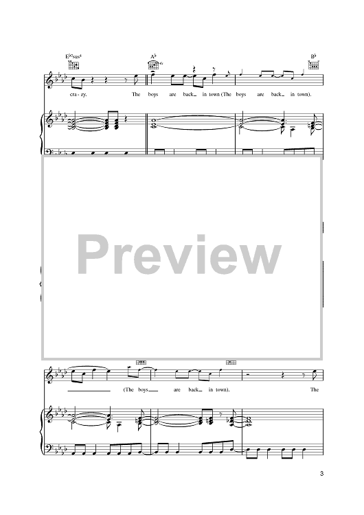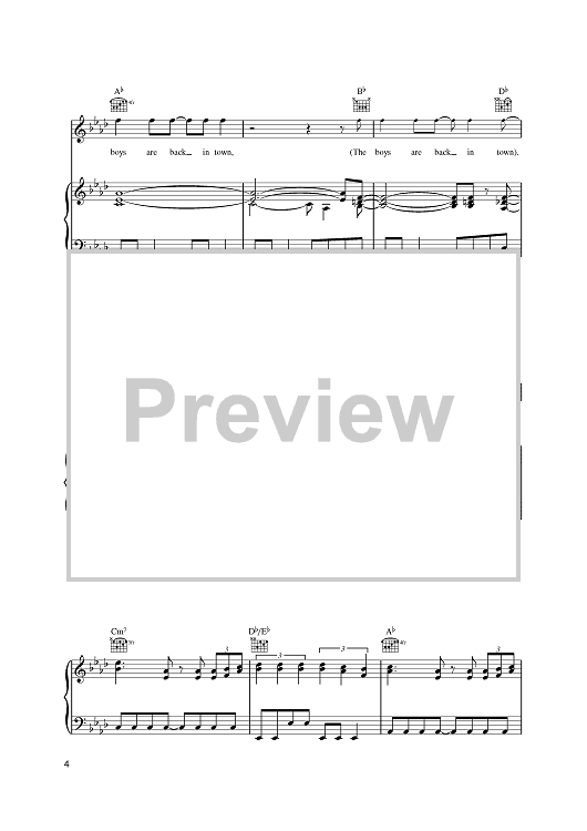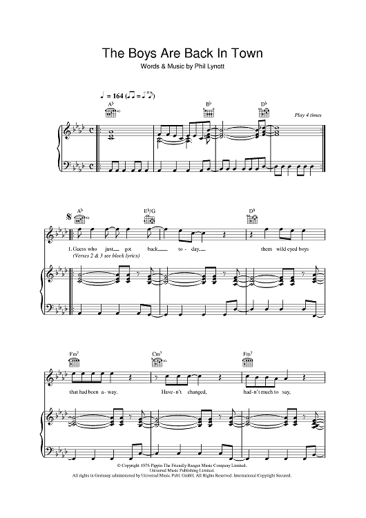 Digital Sheet Music for The Boys Are Back In Town by Thin Lizzy, Phil Lynott scored for Piano/Vocal/Chords; id:398692