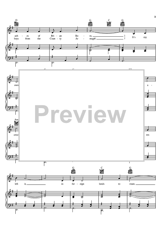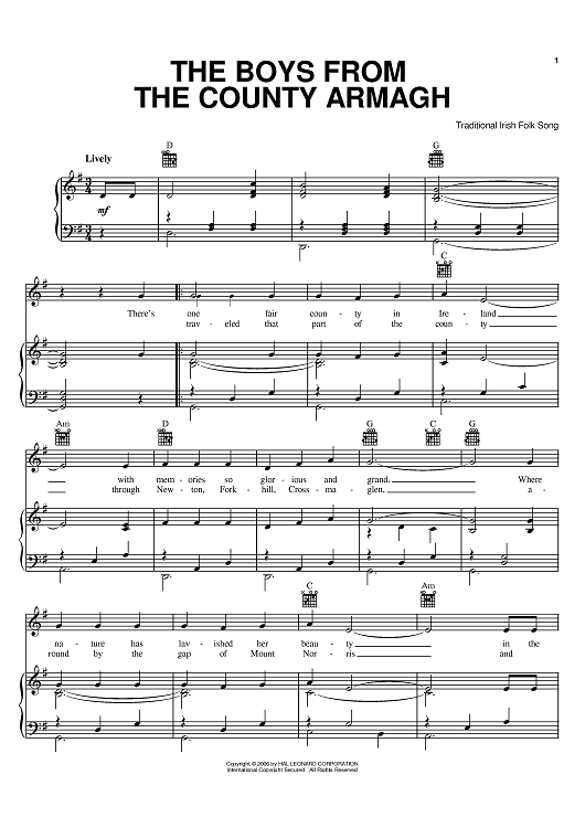 Digital Sheet Music for The Boys From The Country Armagh by scored for Piano/Vocal/Chords; id:394007