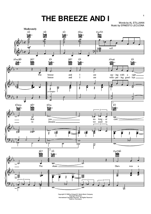Digital Sheet Music for The Breeze And I by Al Stillman, Ernesto Lecuona, Caterina Valente scored for Piano/Vocal/Chords; id:382147