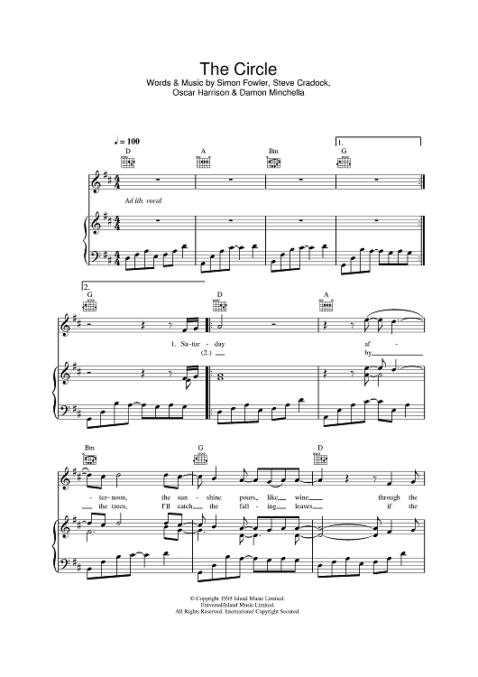 Digital Sheet Music for The Circle by Steve Cradock, Simon Fowler, Oscar Harrison, Journey South, Damon Minchella scored for Piano/Vocal/Chords; id:393294