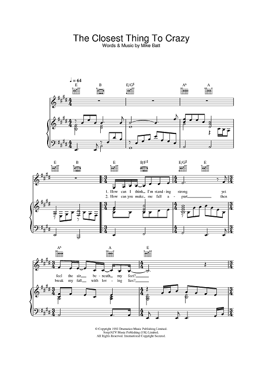 Digital Sheet Music for The Closest Thing To Crazy by Katie Melua scored for Piano/Vocal/Chords; id:378390