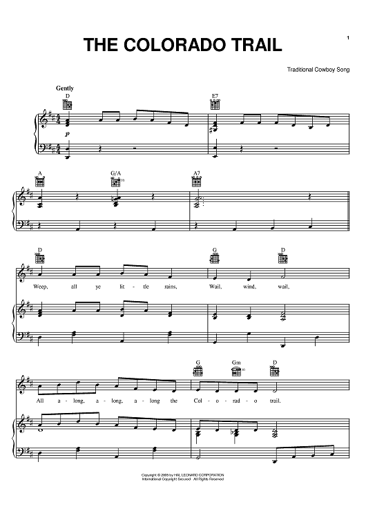 Digital Sheet Music for The Colorado Trail by Don Edwards scored for Piano/Vocal/Chords; id:381369