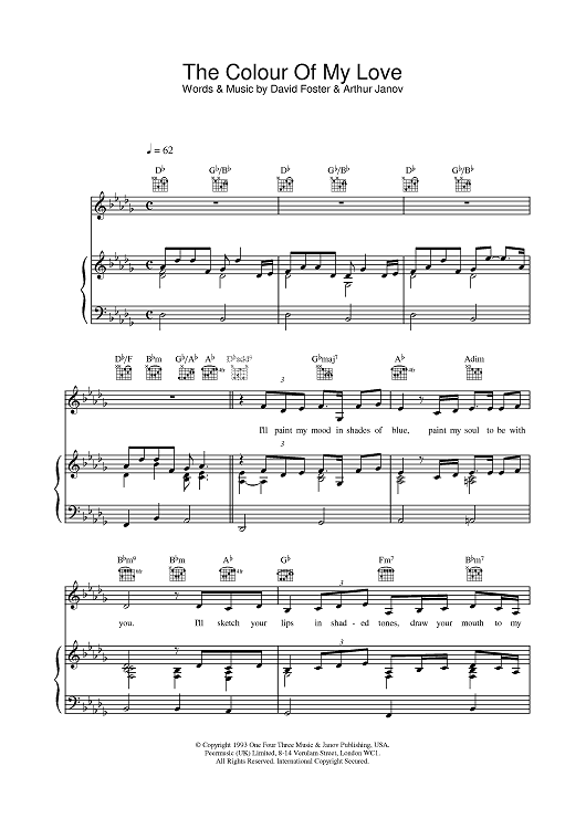Digital Sheet Music for The Colour Of My Love by Celine Dion scored for Piano/Vocal/Chords; id:376123