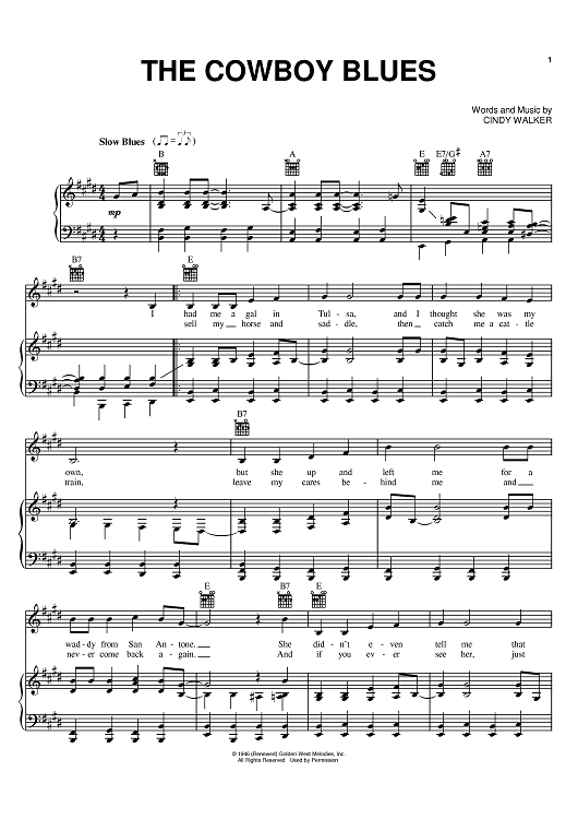 Digital Sheet Music for The Cowboy Blues by Gene Autry, Cindy Walker, Don Edwards scored for Piano/Vocal/Chords; id:381351