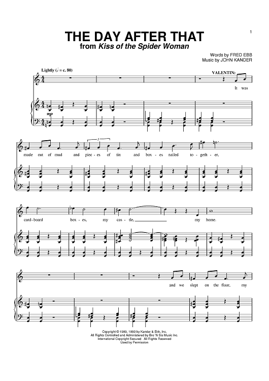 Digital Sheet Music for The Day After That by John Kander, Fred Ebb scored for Piano/Vocal/Chords; id:387790