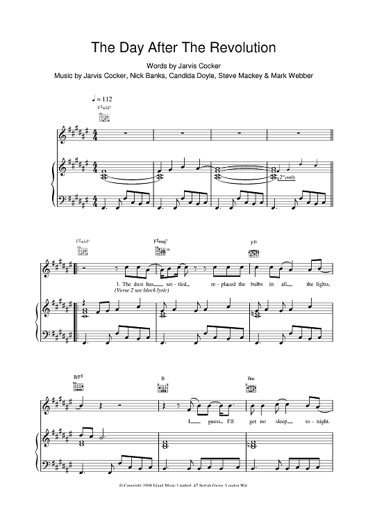 Digital Sheet Music for The Day After The Revolution by Pulp scored for Piano/Vocal/Chords; id:376673