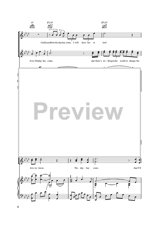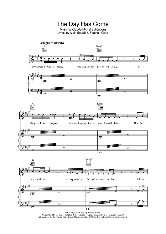 Digital Sheet Music for The Day Has Come by Claude-Michel Schonberg, Alain Boublil scored for Piano/Vocal/Chords; id:392049
