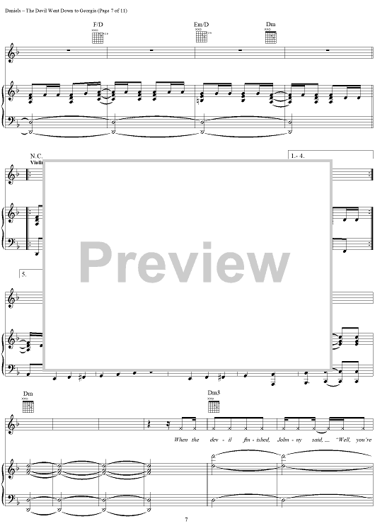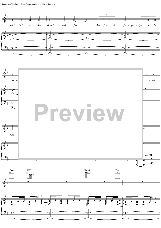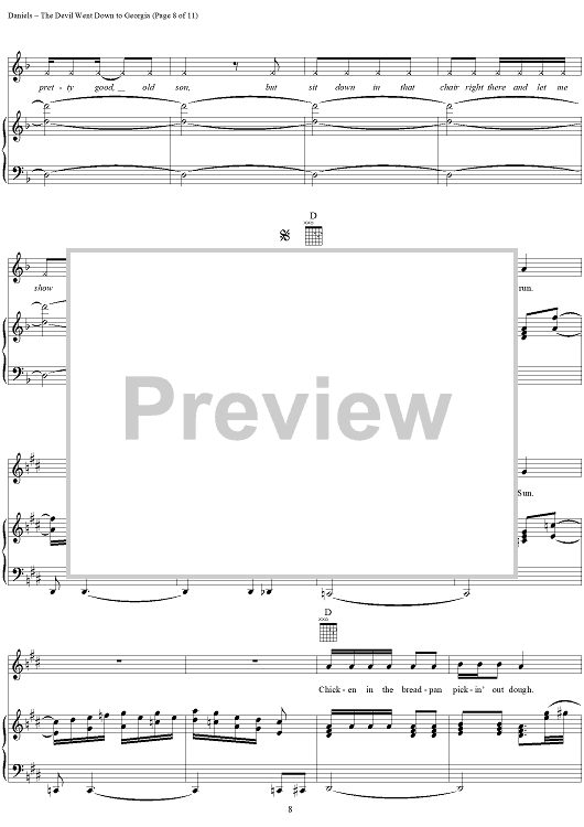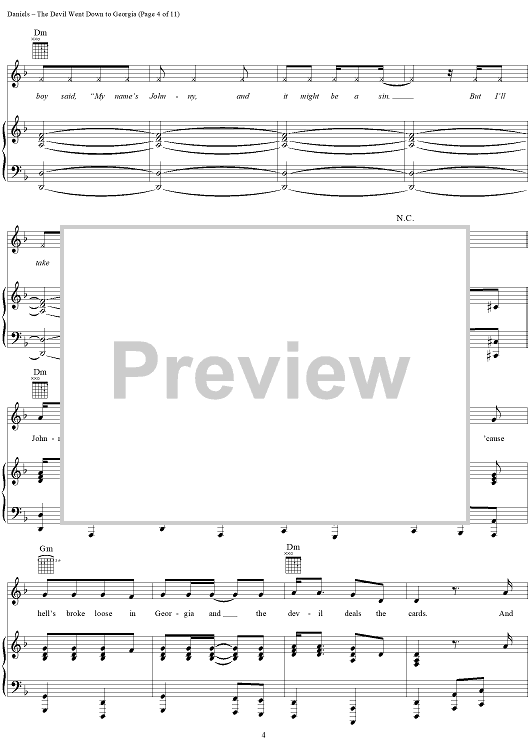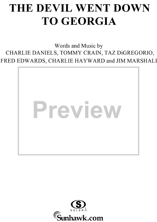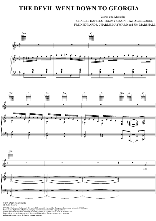 Digital Sheet Music for The Devil Went Down to Georgia by Charlie Daniels, Tommy Crain, Taz DiGregorio, Charlie Hayward, Jim Marshall, Charlie Daniels Band, Fred Laroy Edwards scored for Piano/Vocal/Chords; id:116105