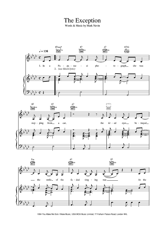 Digital Sheet Music for The Exception by Eddi Reader scored for Piano/Vocal/Chords; id:375921