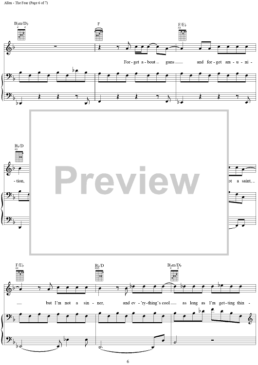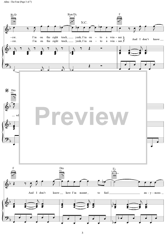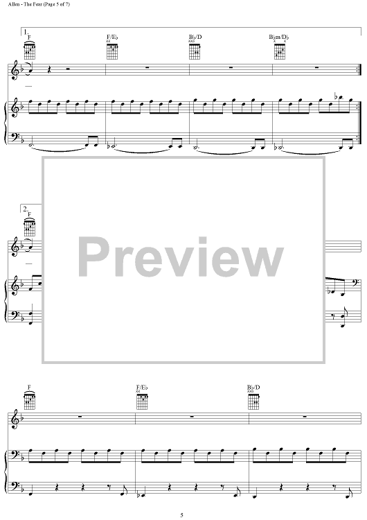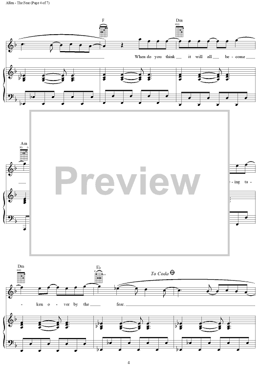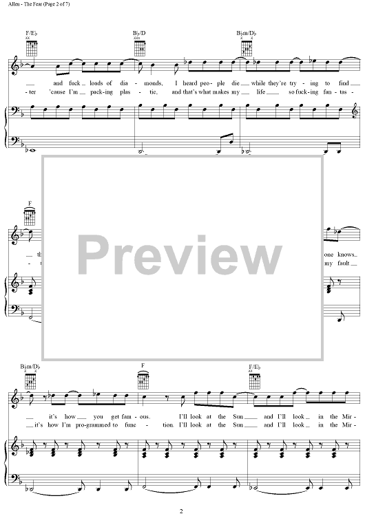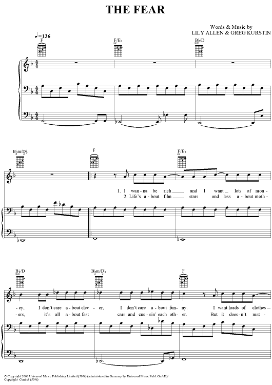 Digital Sheet Music for The Fear by Greg Kurstin, Lily Allen scored for Piano/Vocal/Chords; id:404551