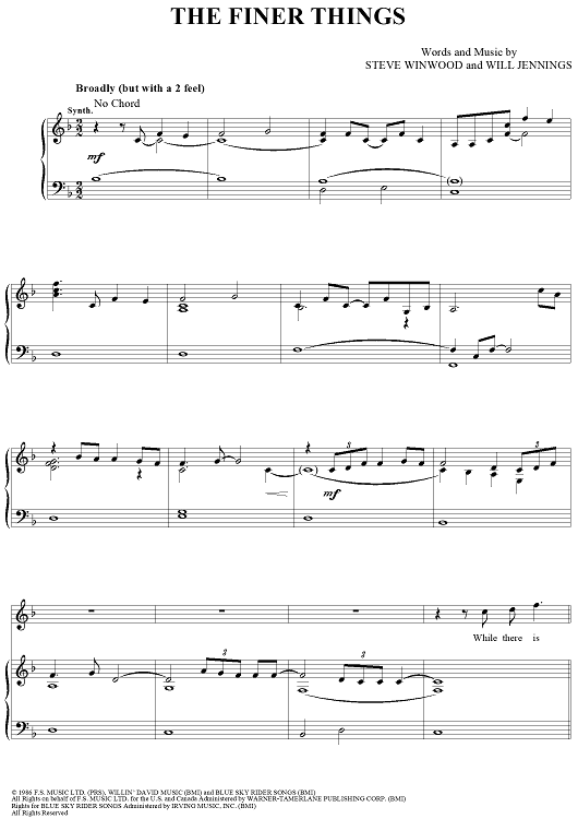 "The Finer Things" Sheet Music by Steve Winwood
