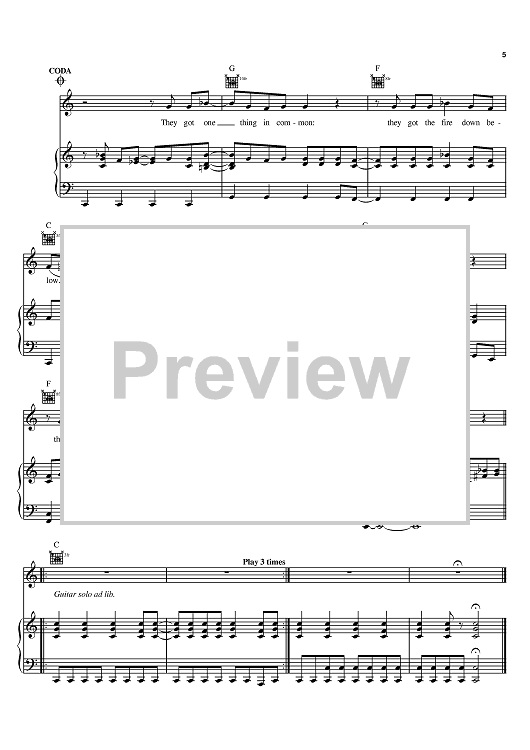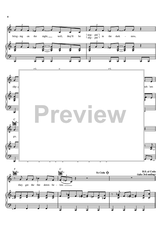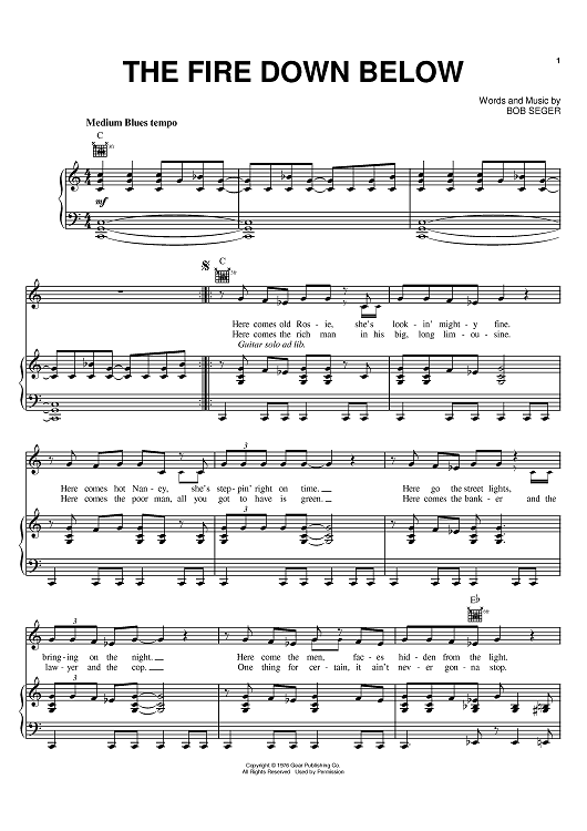 Digital Sheet Music for The Fire Down Below by Bob Seger, Bette Midler scored for Piano/Vocal/Chords; id:373428