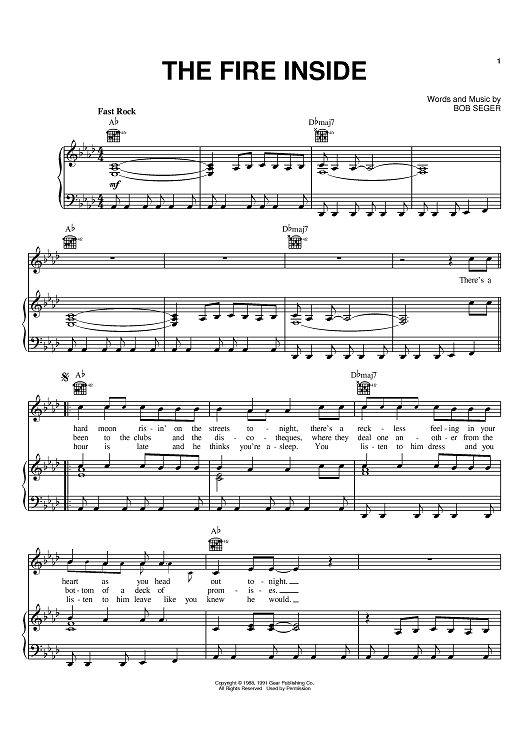 "The Fire Inside" Sheet Music by Bob Seger