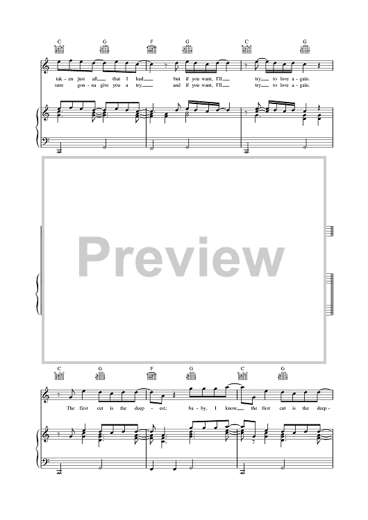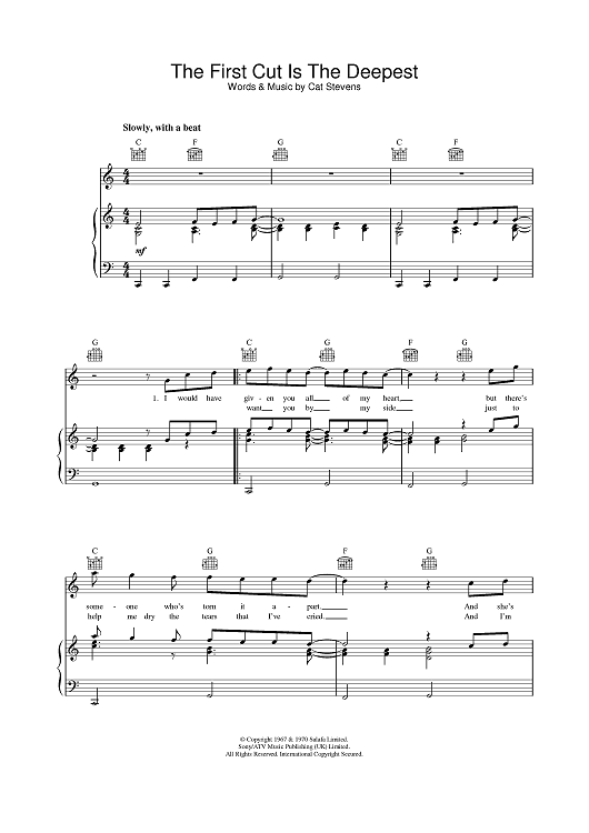 Digital Sheet Music for The First Cut Is The Deepest by Rod Stewart, Sheryl Crow scored for Piano/Vocal/Chords; id:378692