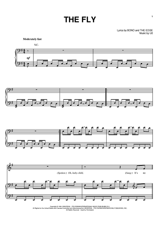 Digital Sheet Music for The Fly by U2, Bono, The Edge scored for Piano/Vocal/Chords; id:382009