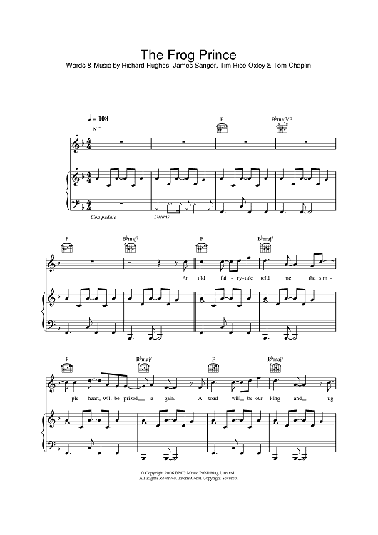 Digital Sheet Music for The Frog Prince by Keane, Tim Rice-Oxley, Tom Chaplin, Richard David Hughes, James Sanger scored for Piano/Vocal/Chords; id:391185
