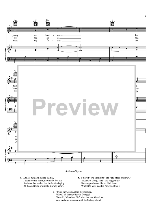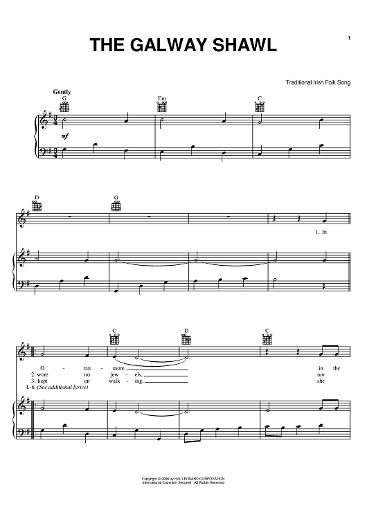 Digital Sheet Music for The Galway Shawl by scored for Piano/Vocal/Chords; id:394011