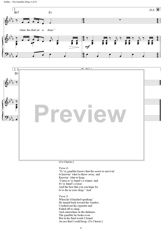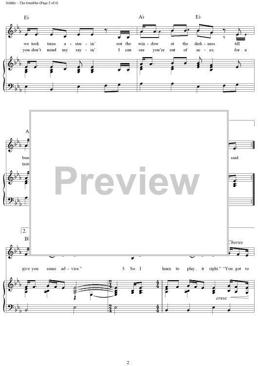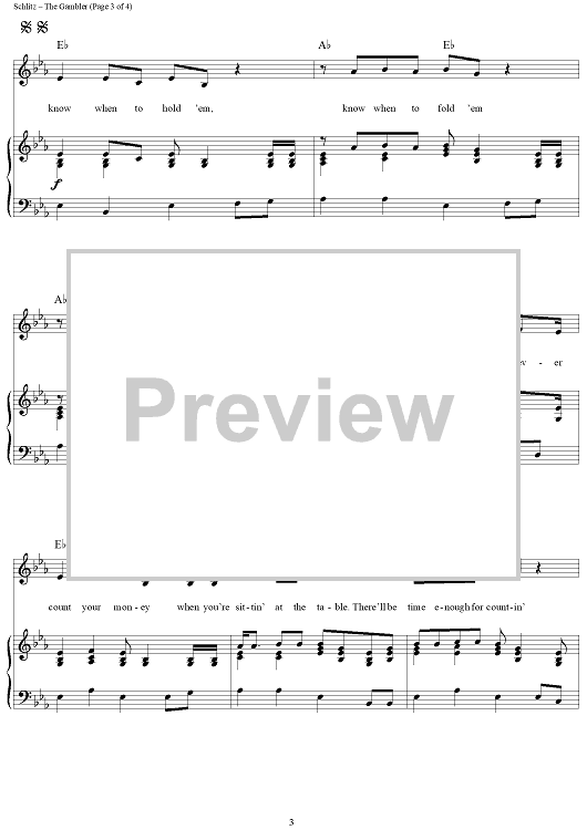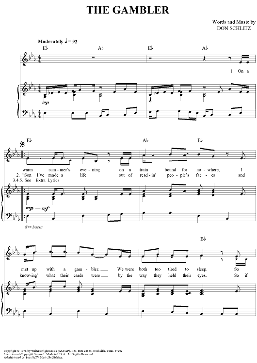 Digital Sheet Music for The Gambler by Kenny Rogers, Don Schlitz scored for Piano/Vocal/Chords; id:360925