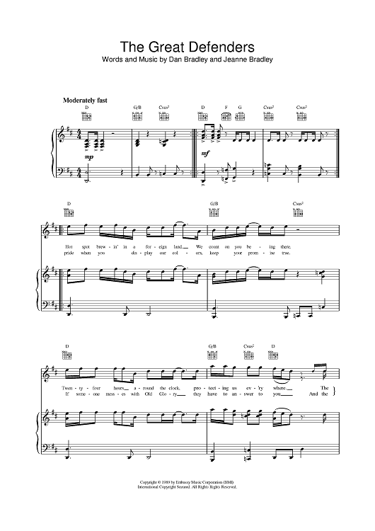 Digital Sheet Music for The Great Defenders by Lee Greenwood scored for Piano/Vocal/Chords; id:377448