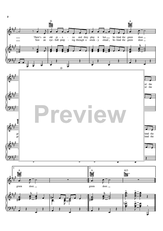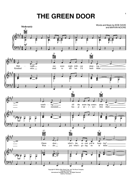 Digital Sheet Music for The Green Door by Bob Davie, Jim Lowe, Marvin Moore scored for Piano/Vocal/Chords; id:383622