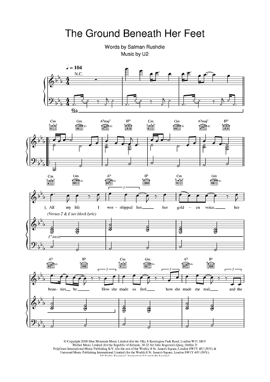 Digital Sheet Music for The Ground Beneath Her Feet by U2 scored for Piano/Vocal/Chords; id:377255