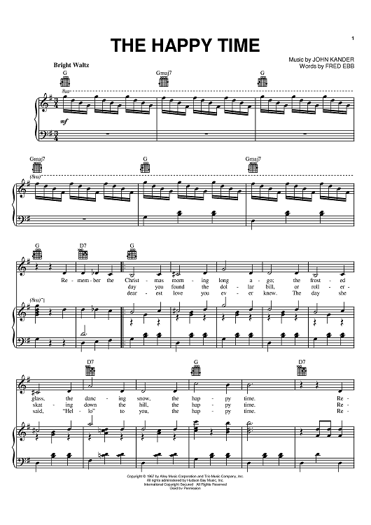Digital Sheet Music for The Happy Time by John Kander, Fred Ebb scored for Piano/Vocal/Chords; id:383623