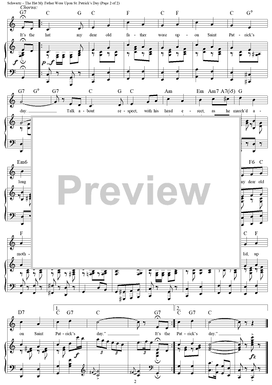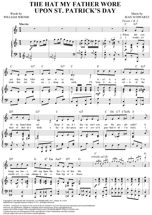 Digital Sheet Music for The Hat My Father Wore Upon St. Patrick's Day by Jean Schwartz, William Jerome scored for Piano/Vocal/Chords; id:257108