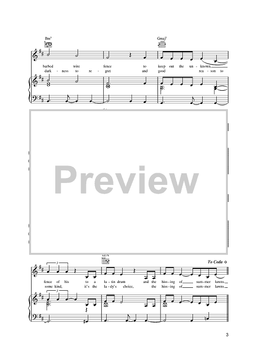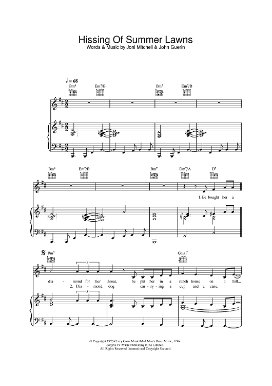 Digital Sheet Music for The Hissing Of Summer Lawns by Joni Mitchell, John Guerin scored for Piano/Vocal/Chords; id:384039