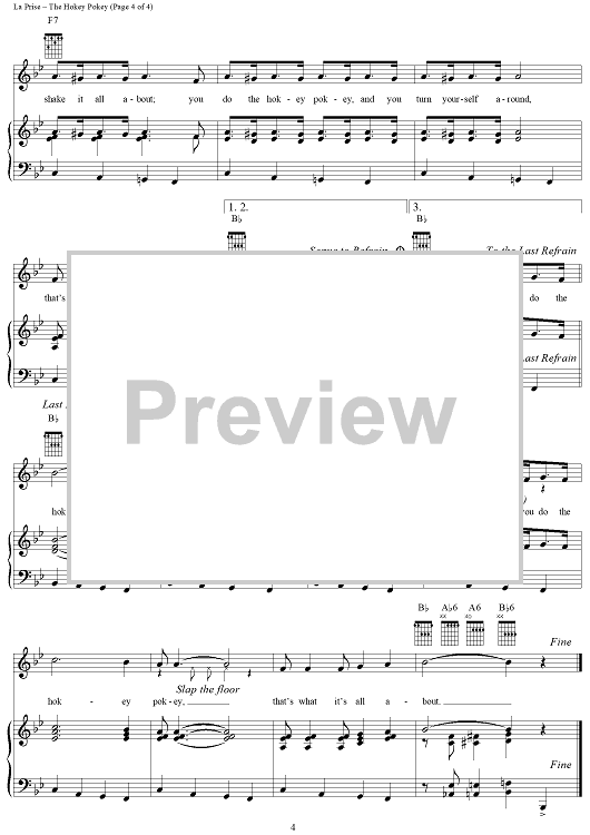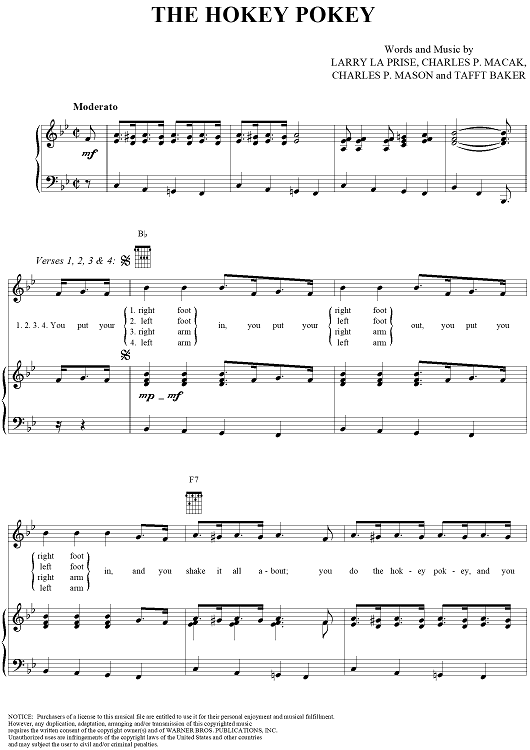 Digital Sheet Music for The Hokey Pokey by Various, Tafft Baker, Charles P. Mason, Charles P. Macak, Larry LaPrise scored for Piano/Vocal/Chords; id:250367