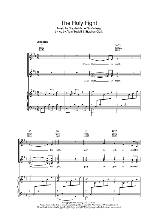 Digital Sheet Music for The Holy Fight by Claude-Michel Schonberg, Alain Boublil scored for Piano/Vocal/Chords; id:392048