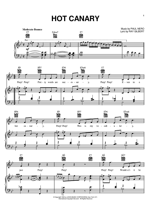 Digital Sheet Music for The Hot Canary by Paul Nero scored for Piano/Vocal/Chords; id:381537