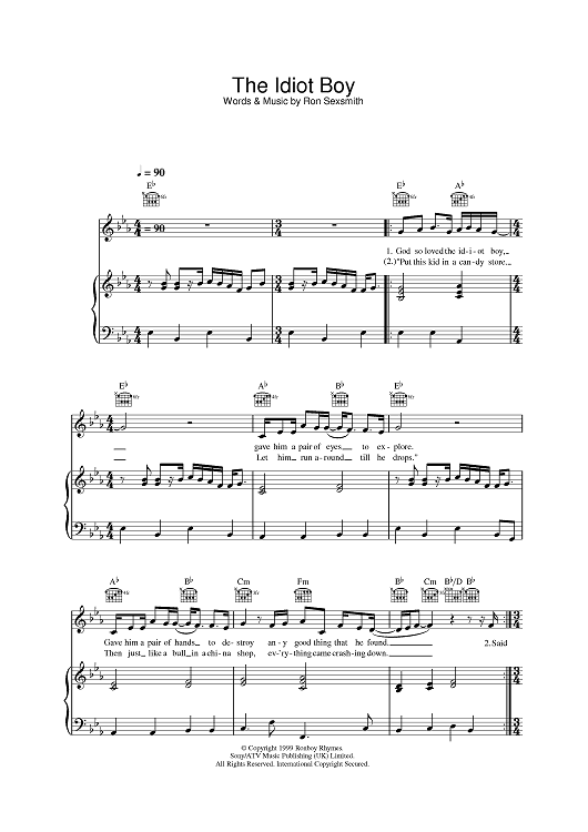 Digital Sheet Music for The Idiot Boy by Ron Sexsmith scored for Piano/Vocal/Chords; id:401301