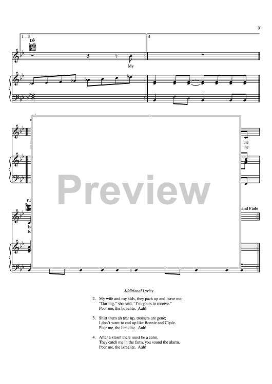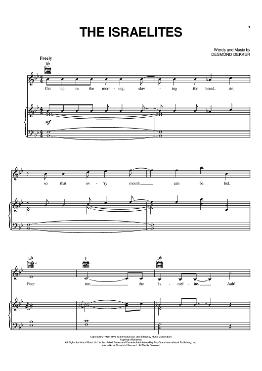 Digital Sheet Music for The Israelites by Desmond Dekker scored for Piano/Vocal/Chords; id:380645