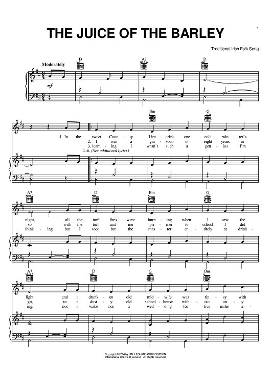 Digital Sheet Music for The Juice Of The Barley by scored for Piano/Vocal/Chords; id:393907