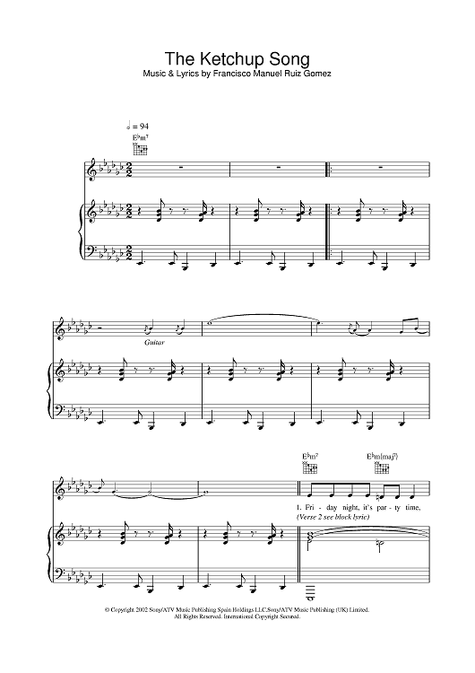 Digital Sheet Music for The Ketchup Song by Las Ketchup scored for Piano/Vocal/Chords; id:377718