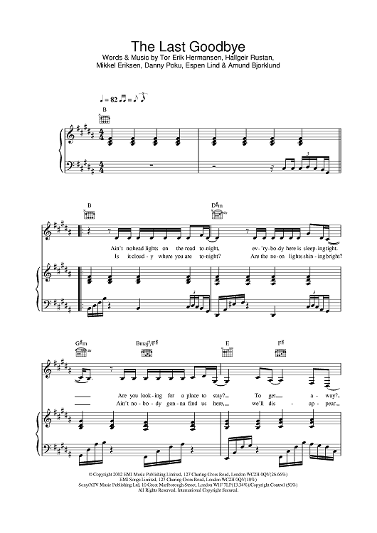 Digital Sheet Music for The Last Goodbye by Atomic Kitten scored for Piano/Vocal/Chords; id:377711